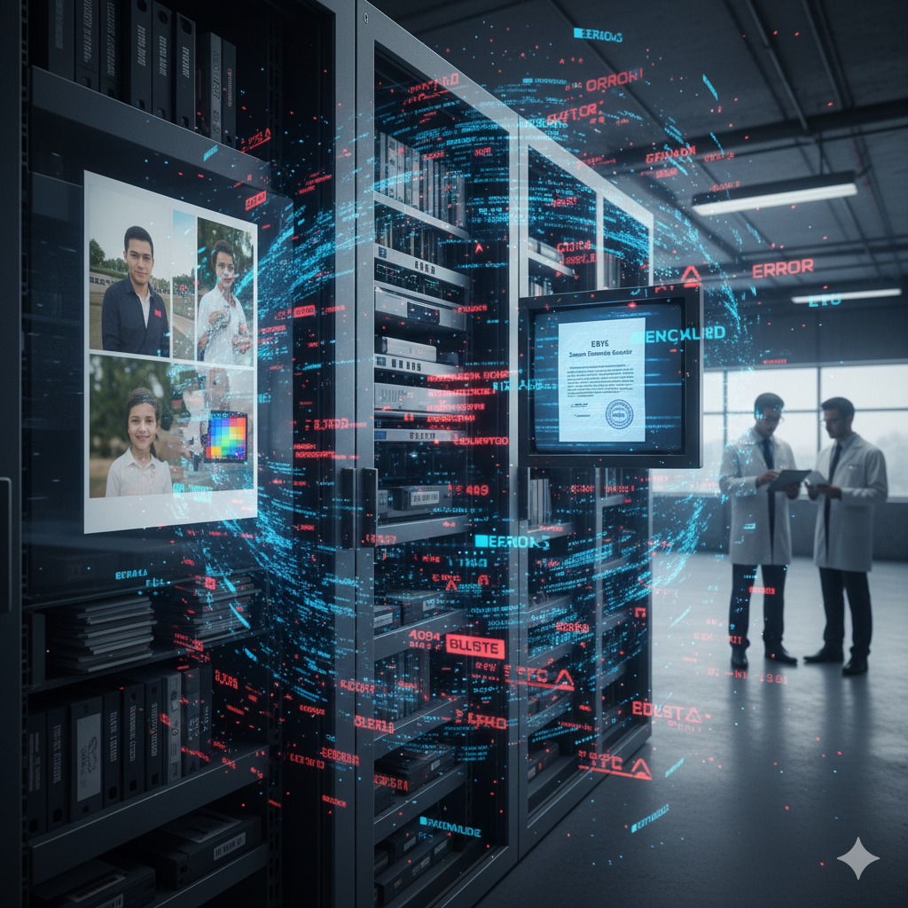 Dijital Mirasın Korunması, Bellek Kurumlarının Teknolojik Eskimeye ve Dinamik İçeriğe Karşı Verdiği Uzun Dönemli Arşivleme Mücadelesini Simgeler (Yapay Zeka ile Oluşturulmuştur)