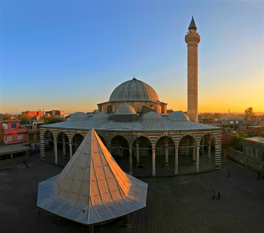 Diyarbakır Ulu Camii, Anadolu’nun en eski camilerindendir. 639 yılında Hz. Ömer döneminde şehrin fethinden sonra Mar Toma Kilisesi’nin camiye çevrilmesiyle oluşturulmuştur. Şam Emeviye Camisi’nin mimarisinden esinlenilerek yapılan cami, İslam dünyasında beşinci Harem-i Şerif olarak kabul edilmektedir. Yapının çeşitli dönemlerde onarımlar gördüğü ve önemli İslam devletleri tarafından yenilendiği bilinmektedir. İç mekânı, taş işçiliği ve hat sanatının zarif örnekleriyle süslenmiş olup, caminin avlusunda yer alan tarihi güneş saati dikkat çekicidir. Avlusunda ayrıca Şafiiler bölümü, Hanefiler bölümü ve Mesudiye Medresesi gibi yapılar bulunmaktadır.