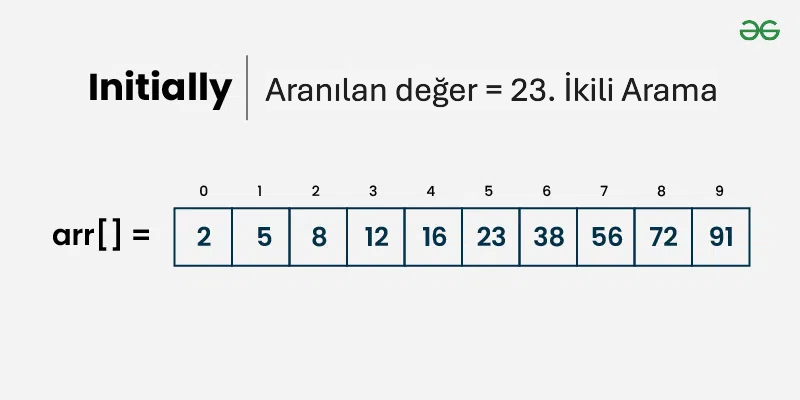 İkili Arama Başlangıç Görseli (Kaynak: www.geeksforgeeks.org)