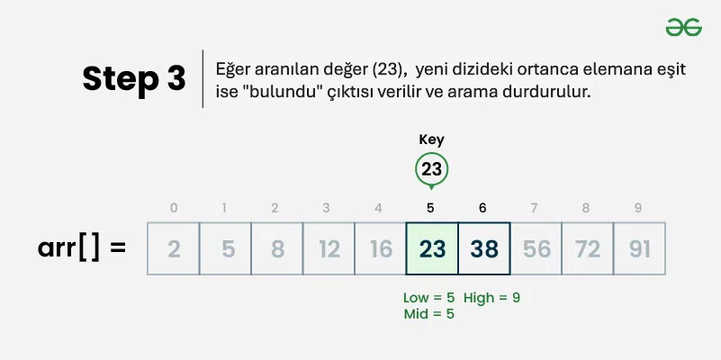 İkili Arama Adım 3 (Kaynak: www.geeksforgeeks.org)