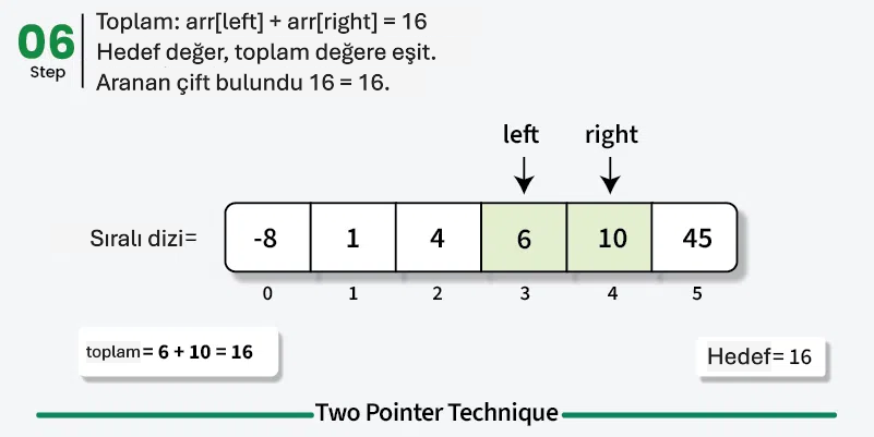 İki İşaretçi Tekniği Adım 6 (Kaynak: www.geeksforgeeks.org)