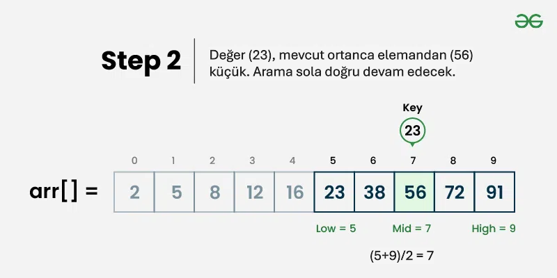 İkili Arama Adım 2 (Kaynak: www.geeksforgeeks.org)