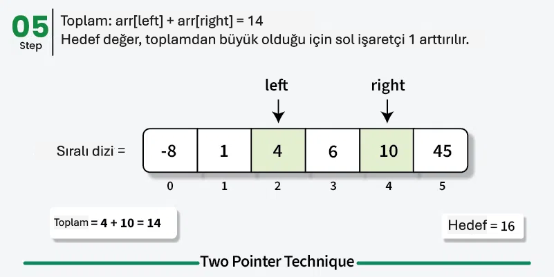 İki İşaretçi Tekniği Adım 5 (Kaynak: www.geeksforgeeks.org)