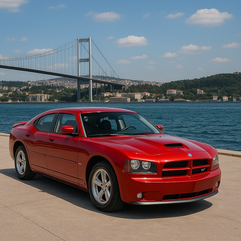 2006 Dodge Charger İstanbul Boğazı Önünde (Yapay zeka ile oluşturulmuştur)