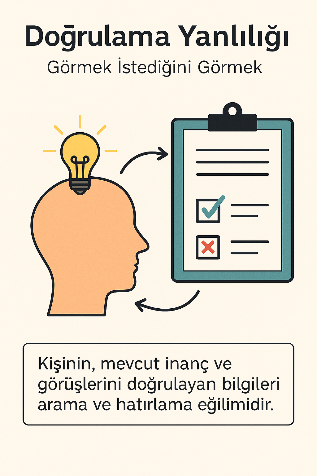 Doğrulama yanlılığı (Confirmation Bias), bireylerin mevcut inanç, varsayım veya hipotezlerini doğrulayan bilgileri arama, hatırlama ve yorumlama eğiliminde olmasını ifade eden yaygın bir bilişsel çarpıtmadır. Bu yanlılık, bireyin objektif ve dengeli karar alma süreçlerini bozup bilgilerin yanlı ve tek taraflı değerlendirilmesine yol açmakta ve sosyal medya, siyaset, sağlık, hukuk ve din gibi alanlarda sürekli ve fark edilmeksizin etkili olmaktadır.