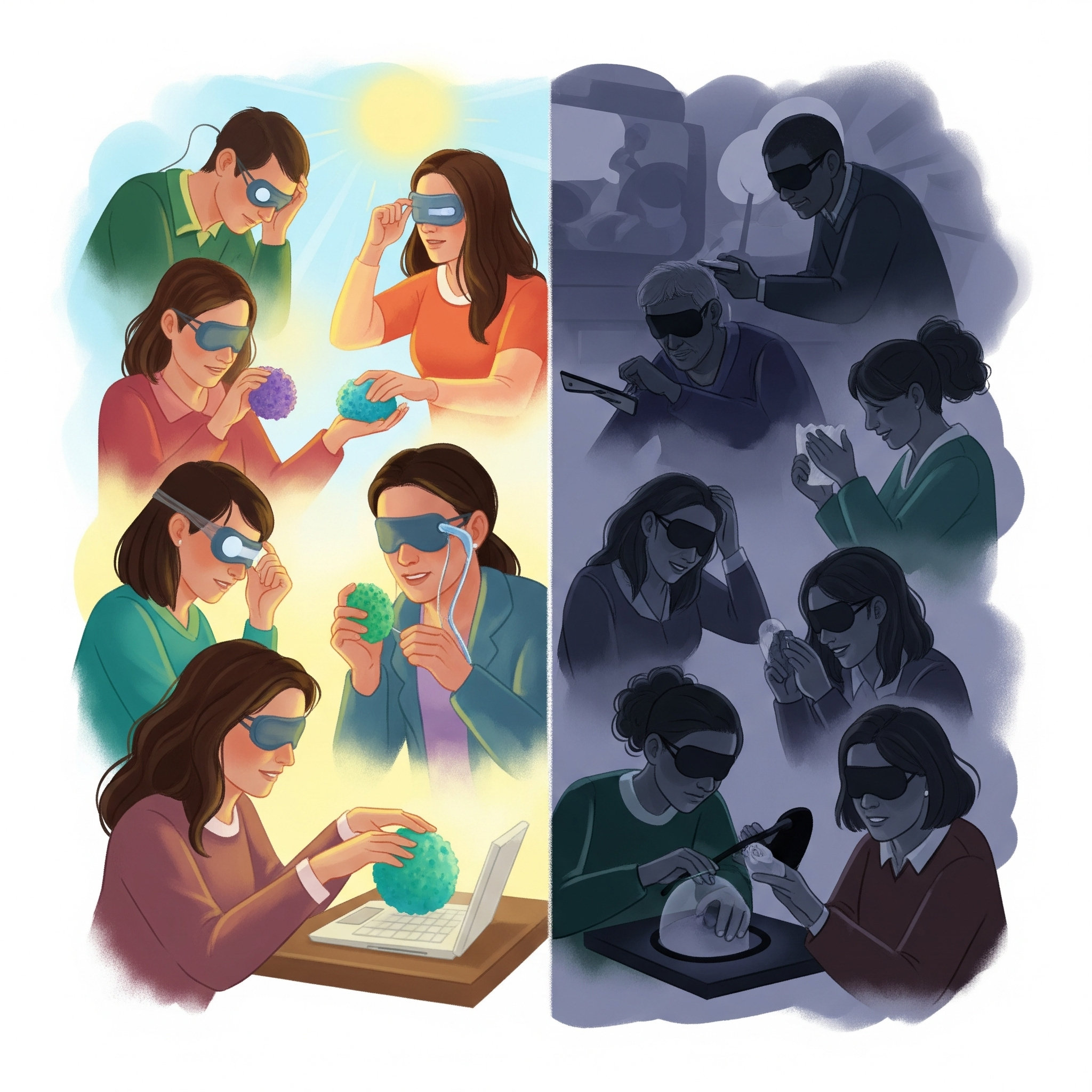 Doğuştan Görme Engelli Bireyler ile Doğuştan Total Görme Engellilerin Farkını Gösteren Bir İllüstrasyon (Yapay Zeka Yardımıyla Oluşturulmuştur)