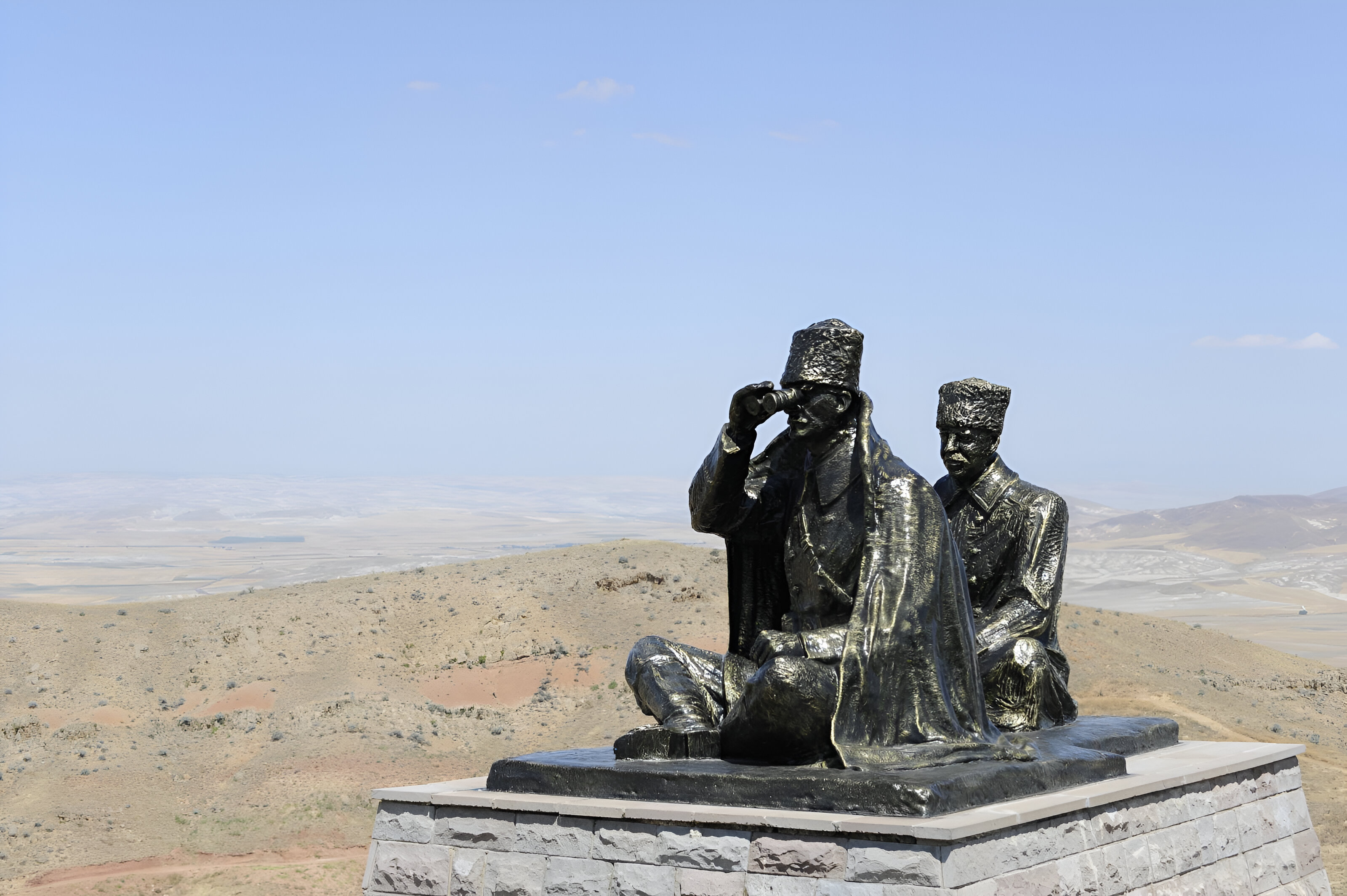 Duatepe Anıtı, Anadolu halkının Mustafa Kemal Atatürk önderliğinde zafere ve uygarlığa coşkun bir ırmak gibi koşma öyküsünü simgeler. Anıtın en dikkat çekici unsurlarından biri, Mustafa Kemal’in şahlanan at üzerindeki figürüdür; bu heykel, Türk milletinin önderinden duyduğu gurur ve mutluluğu, aynı zamanda bir çocuğun en sevdiği oyuncağıyla oynarken yaşadığı heyecanı ifade eder. Arka planda yer alan Atatürk, İsmet İnönü ve Mareşal Fevzi Çakmak heykelleri, emir komuta birliğini temsil ederken; Halide Edip Adıvar’ın heykeli, Türk kadınının Kurtuluş Savaşı’ndaki katkılarını vurgular. Atatürk ve yaverinin dürbünle ovayı izlediği sahne ise, zaferin ve bağımsızlığın müjdesini umutla bekleyen Türk ulusunu yansıtır. Anıtta bulunan iki bayrak, biri 38. Alay’ın sancağını diğeri ise Türk Bayrağı’nı temsil eder.