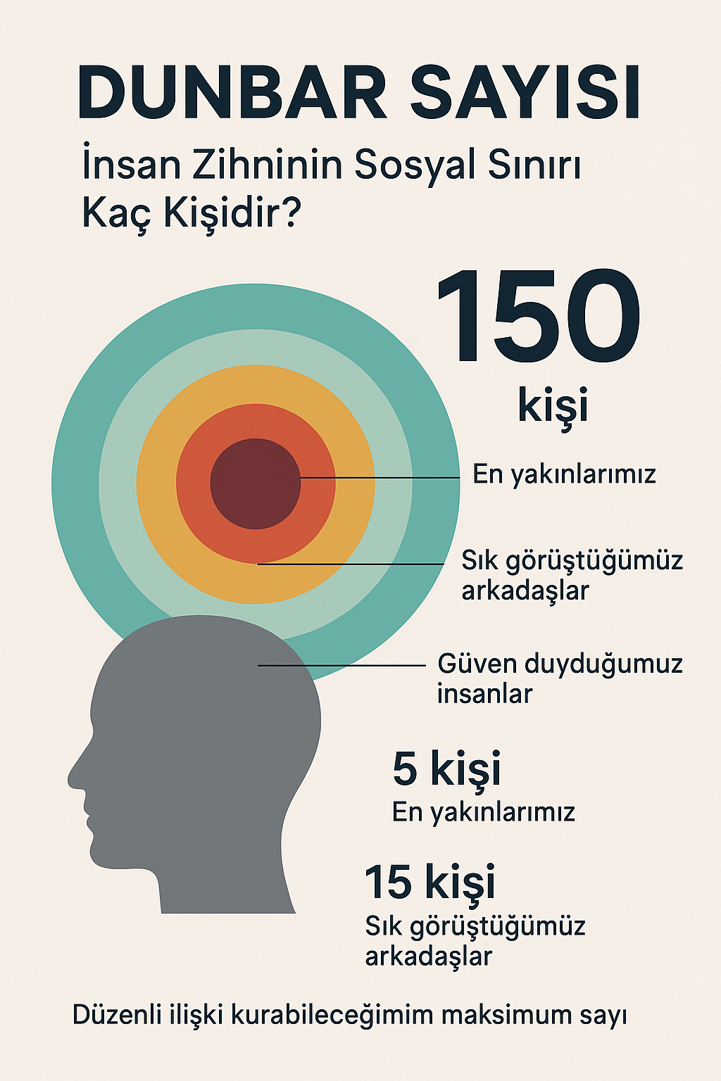 Dunbar Sayısı hakkında bir bilgi kartı görsel. (Yapay Zeka tarafından oluşturulmuştur.)