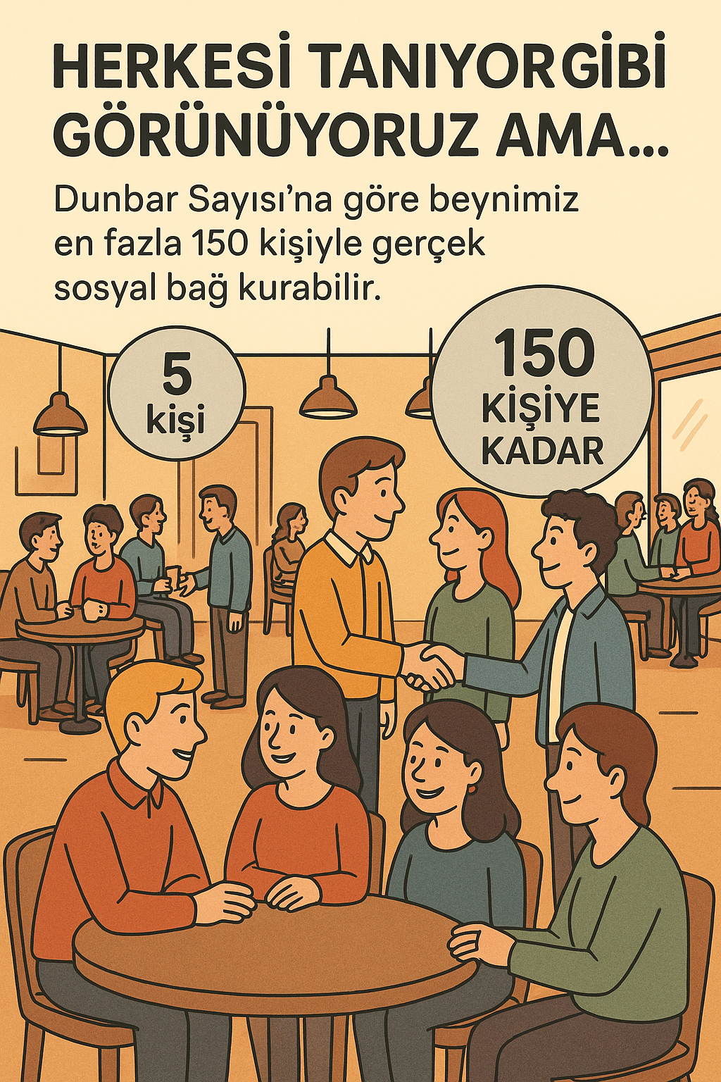 Hepimizin çevresinde onlarca, belki yüzlerce insan var. Ailemiz, arkadaşlarımız, iş çevremiz, eski sınıf arkadaşlarımız, sosyal medya bağlantılarımız… Ama dürüst olalım: Bunlardan kaç tanesiyle gerçek, derin bir bağ kurabiliyoruz? İşte tam bu noktada Dunbar Sayısı devreye giriyor.
