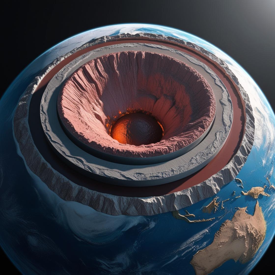 Dünya iç yapısı, (Yapay zekâ ile oluşturulmuştur)