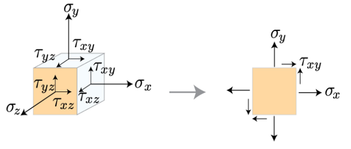 - Kompozit malzemeler, genellikle ince tabakalardan oluşur. Kalınlık yönündeki gerilmelerin diğer yönlere kıyasla daha düşük olduğu durumlarda, düzlem gerilme(plane stress) durumu uygulanabilir.