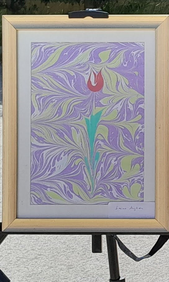 Ebru sanatında lale örneği. (Fotoğraf: Çiğdem Alparslan)