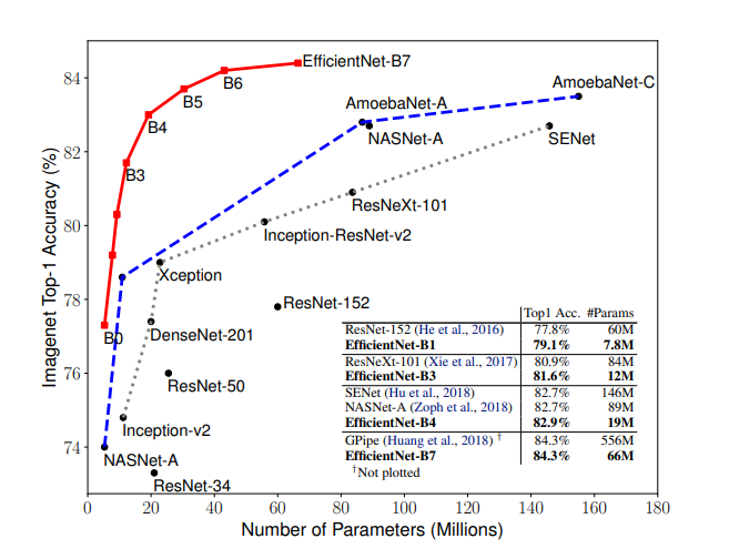 EfficientNet, B0’dan B7’ye kadar uzanan 8 farklı modelden oluşur. Her model, bir öncekine kıyasla daha fazla parametre içerir ve daha yüksek doğruluk sunar.