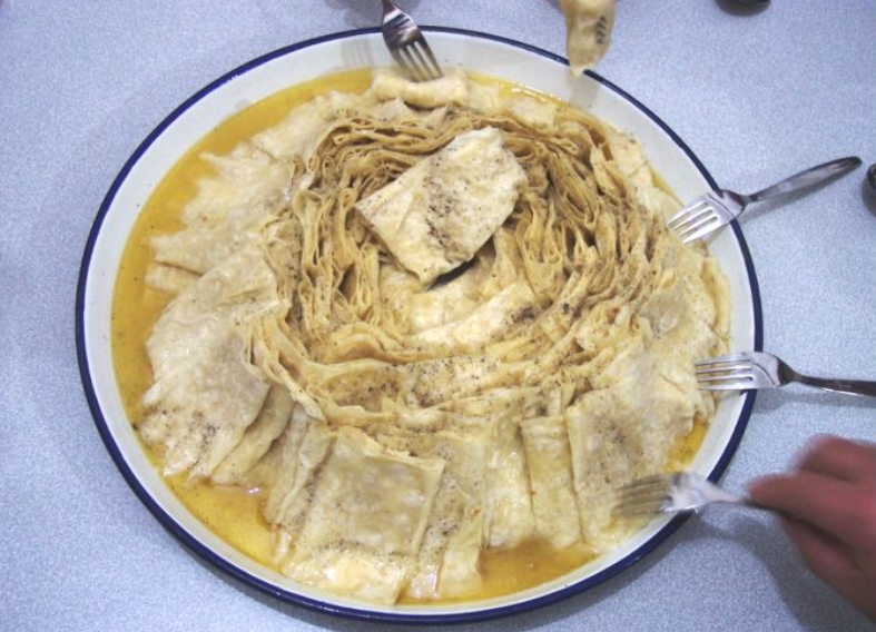 Etin yağ oranı düşük, protein oranı yüksektir. Pişirme süreci sonunda hindinin tüm yağı suyuna geçmekte, bu yağlı su ise yemeğin hazırlanmasında kullanılmaktadır. Bandırma ekmeği ise yöreye özgü buğday unundan yapılan ve yapısı sayesinde hindi suyunu emme kapasitesine sahip mayasız bir yufkadır. Bandırma işlemi sırasında bu ekmekler, hindi suyuna kısa süreyle daldırılarak tepsiye dik şekilde dizilir. Üzerine didiklenmiş hindi eti ilave edilerek servis edilir.