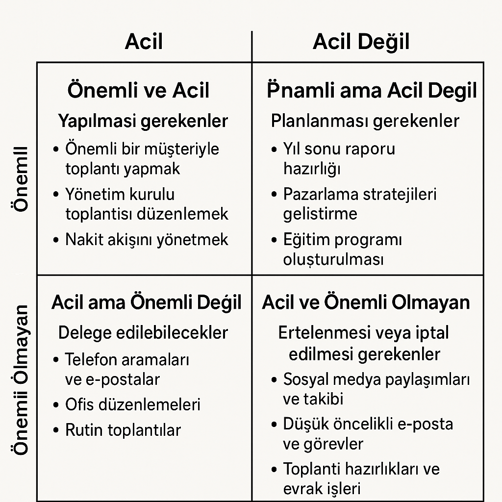 Örnek: İşletme Yönetimi ve Günlük İşler İçin Eisenhower Matrisi
