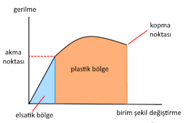 Gerilme-gerinim grafiğinde, lineer bölge altında kalan alan elastik bölge olarak adlandırılır. Bir cismin elastik deformasyon bölgesini aşıp aşmadığı, malzemenin yük altında ulaştığı gerilme değeriyle belirlenir. Buna göre, yük altındaki parçada oluşan gerilme değeri malzemenin akma noktasını geçmiyorsa, yapı elastik bölge sınırları içinde kalmış demektir ve yalnızca geçici bir şekil değişimi söz konusudur (elastik deformasyon).