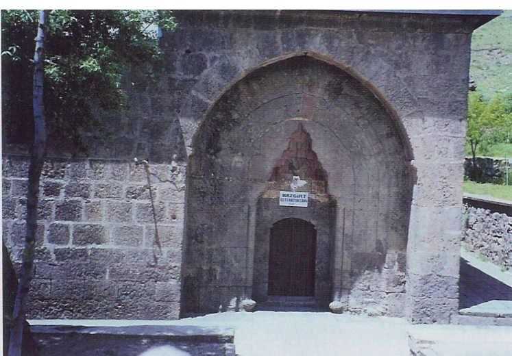 Yapının ana giriş cephesi son derece dikkat çekicidir. Sivri kemerli bir iç kemerle çevrili, derinliği az bir niş içine yerleştirilmiş taç kapı, dönemin mimari üslubuna uygun olarak sade ama etkili bir görsellik taşır. İç kapı üzerinde stalaktit bezemeli bir niş bulunmaktadır. Bu tür süslemeler, Selçuklu döneminde yaygın olarak kullanılan bezeme unsurlarındandır. Giriş düzenlemesinde özellikle taş işçiliği dikkat çeker. Ayrıca kuzeybatı köşeye sonradan eklenmiş ikinci bir giriş kapısı da mevcuttur. Bu kapı, sonraki dönemlerde yapılan müdahalelere işaret eder.