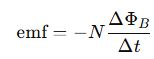 Burada N, bobinin sarım sayısını, ΔΦB ise manyetik akı değişimini [Wb] ifade eder. Bir bobin üzerindeki manyetik akı değiştikçe, bobinin etrafında bir emf oluşur. Bu emf'nin büyüklüğü, bobinin sarım sayısı ve manyetik akı değişiminin hızına bağlıdır. Bu nedenle, bobin sayısının arttırılması, indüklenen emf'yi artıracaktır.