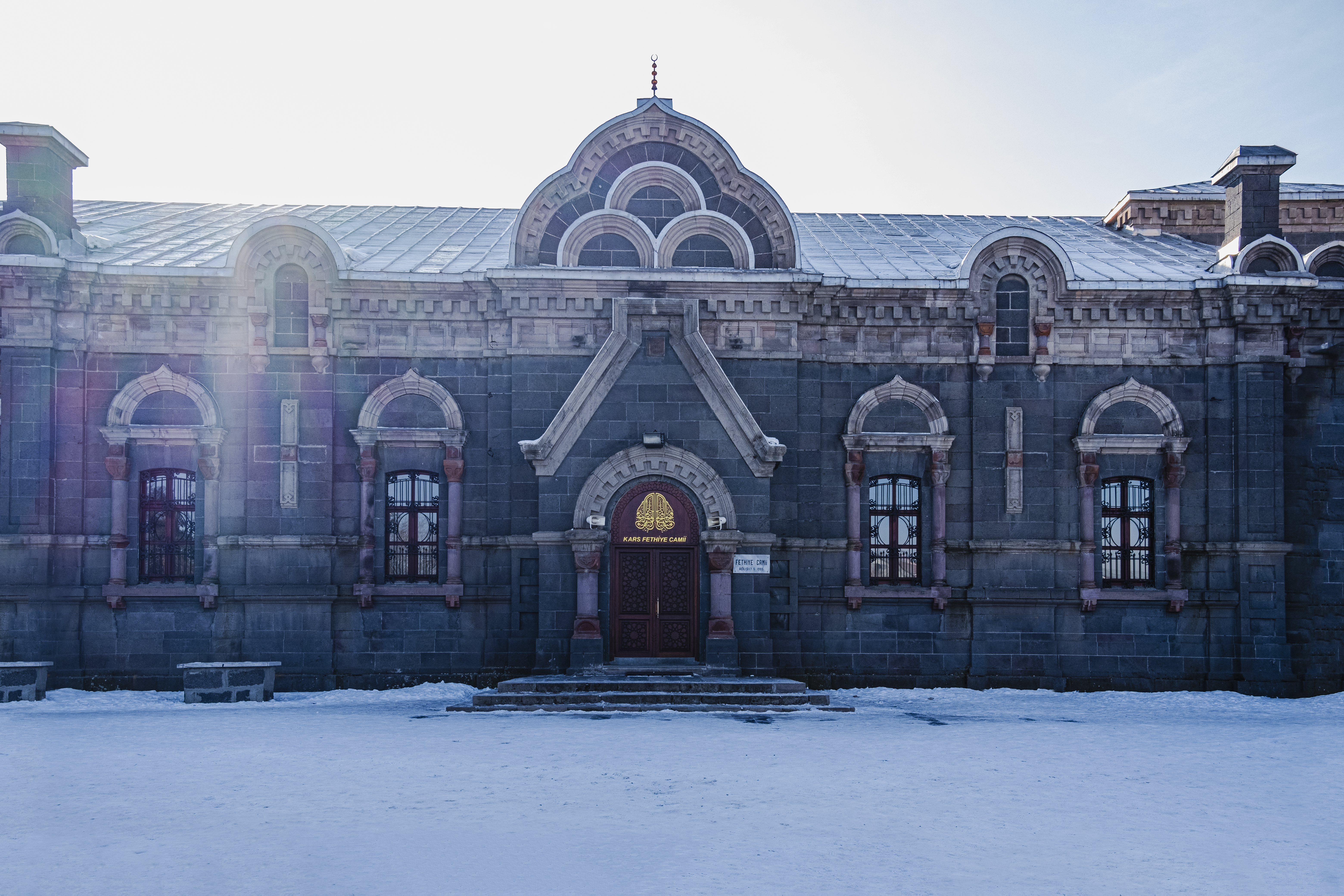 Kars’ın 40 yıl süren Rus işgali döneminde inşa edilen yapı, 1920 sonrasında Türkiye Cumhuriyeti idaresine geçmiştir. Cumhuriyet’in ilk yıllarında çeşitli kamu kurumları tarafından kullanılan bina, 1953-1970 yılları arasında kapalı spor salonu olarak işlev görmüştür. Yapı, 1984-1985 yılları arasında iki minare eklenerek camiye dönüştürülmüş ve 17 Mayıs 1985 tarihinde "Fethiye Camii" adıyla ibadete açılmıştır.