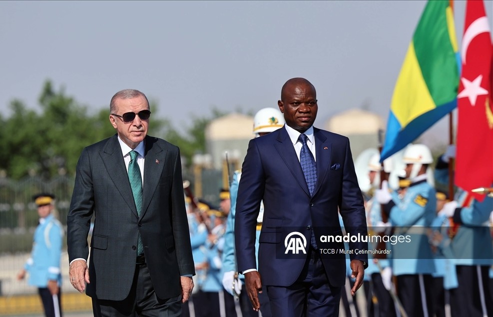 Cumhurbaşkanı Oligui Nguema, Ankara’da Cumhurbaşkanı Recep Tayyip Erdoğan tarafından resmi törenle karşılanmıştır. Cumhurbaşkanlığı Külliyesi önünde süvariler tarafından karşılanan Nguema’nın makam aracına, protokol kapısına kadar eşlik edilmiştir. Tören sırasında iki ülkenin milli marşları çalınmış, 21 pare top atışı yapılmış ve tarihte kurulan 16 Türk devletini temsil eden bayraklar ile askeri birlikler yer almıştır. Nguema, Muhafız Alayı Tören Kıtası’nı "Merhaba asker" diyerek selamlamıştır. Törenin ardından iki lider, Türkiye ve Gabon bayrakları önünde tokalaşarak basına poz vermiştir.