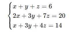 Aşağıda 3 bilinmeyenli bir doğrusal denklem sistemi【1】 verilmiştir: