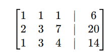 Sistem, genişletilmiş matris (augmented matrix) kullanılarak şu şekilde ifade edilir: