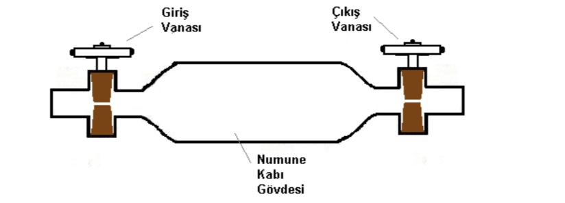 - Numune kabı giriş tarafından tank numune vanasına bağlanır.