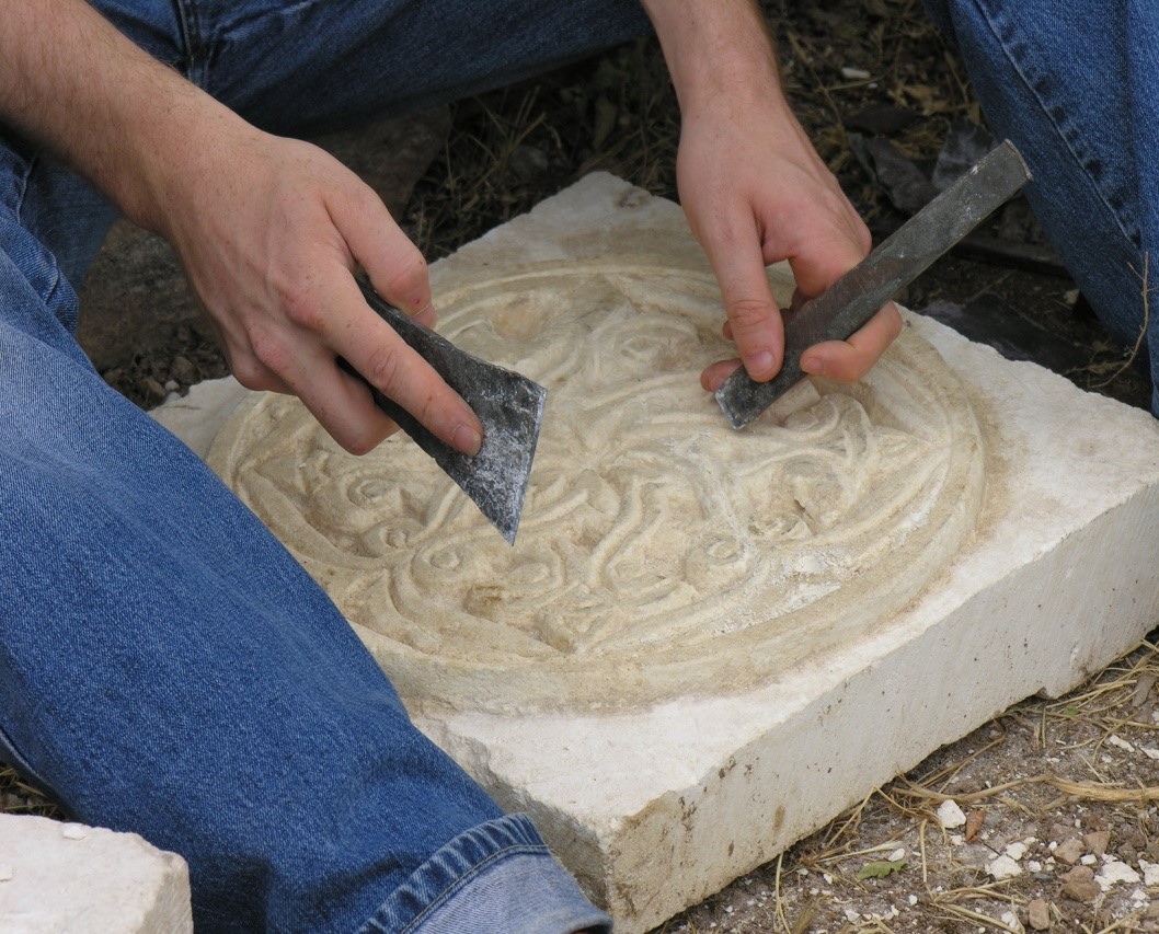 - Yontma tamamlanan taşlar, kazıma, kabartma ve oyma teknikleriyle süslenir.