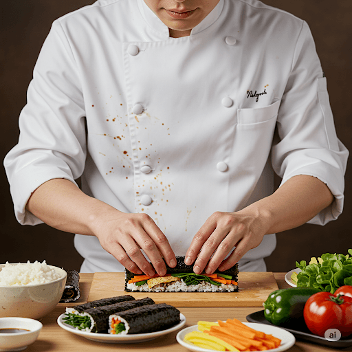 A chef preparing gimbap (AI-generated)