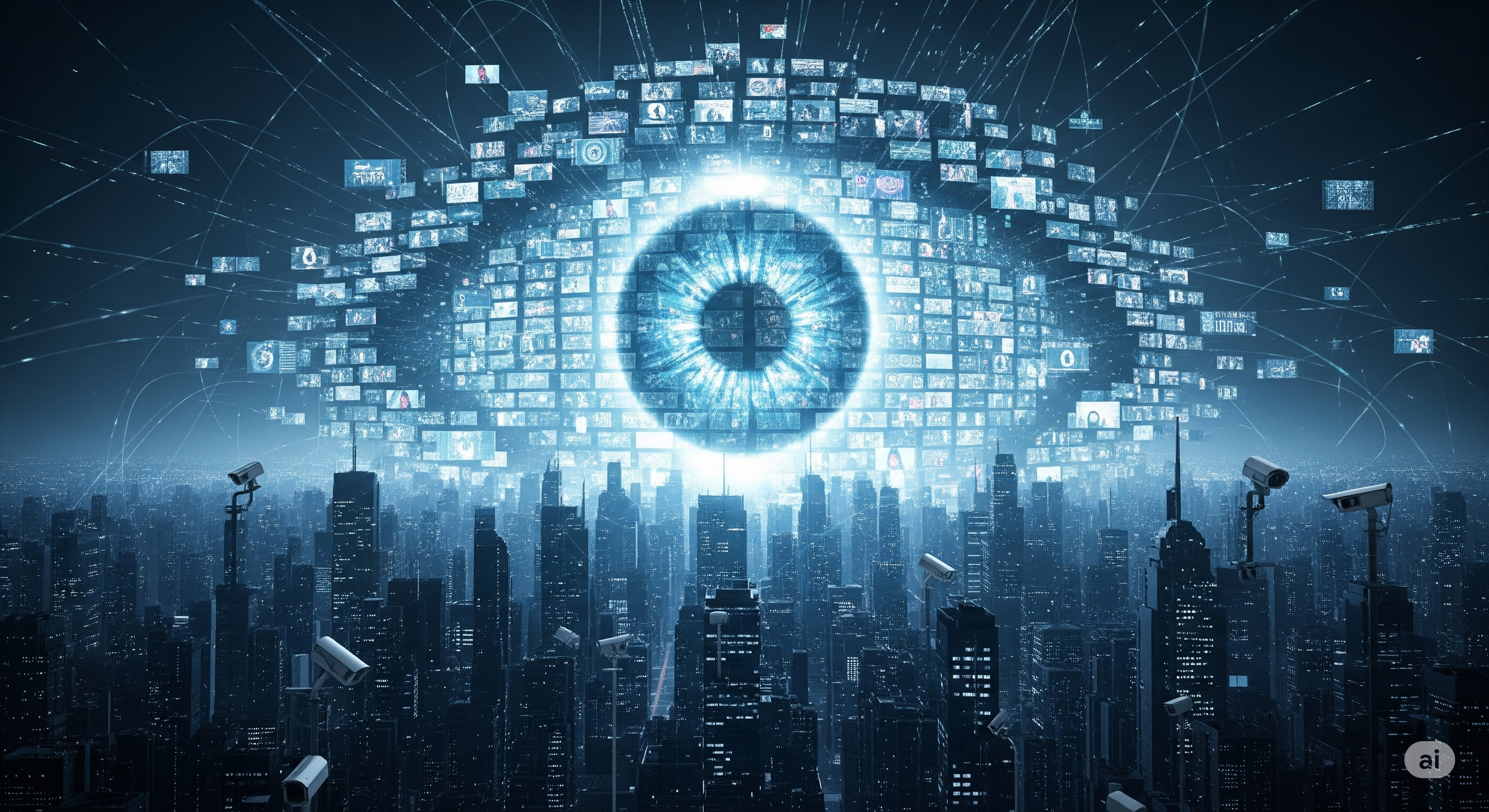 Dijital Panoptikon: Herkesin Gözetlendiği Şehir Manzarası (Yapay Zeka İle Üretilmiştir)