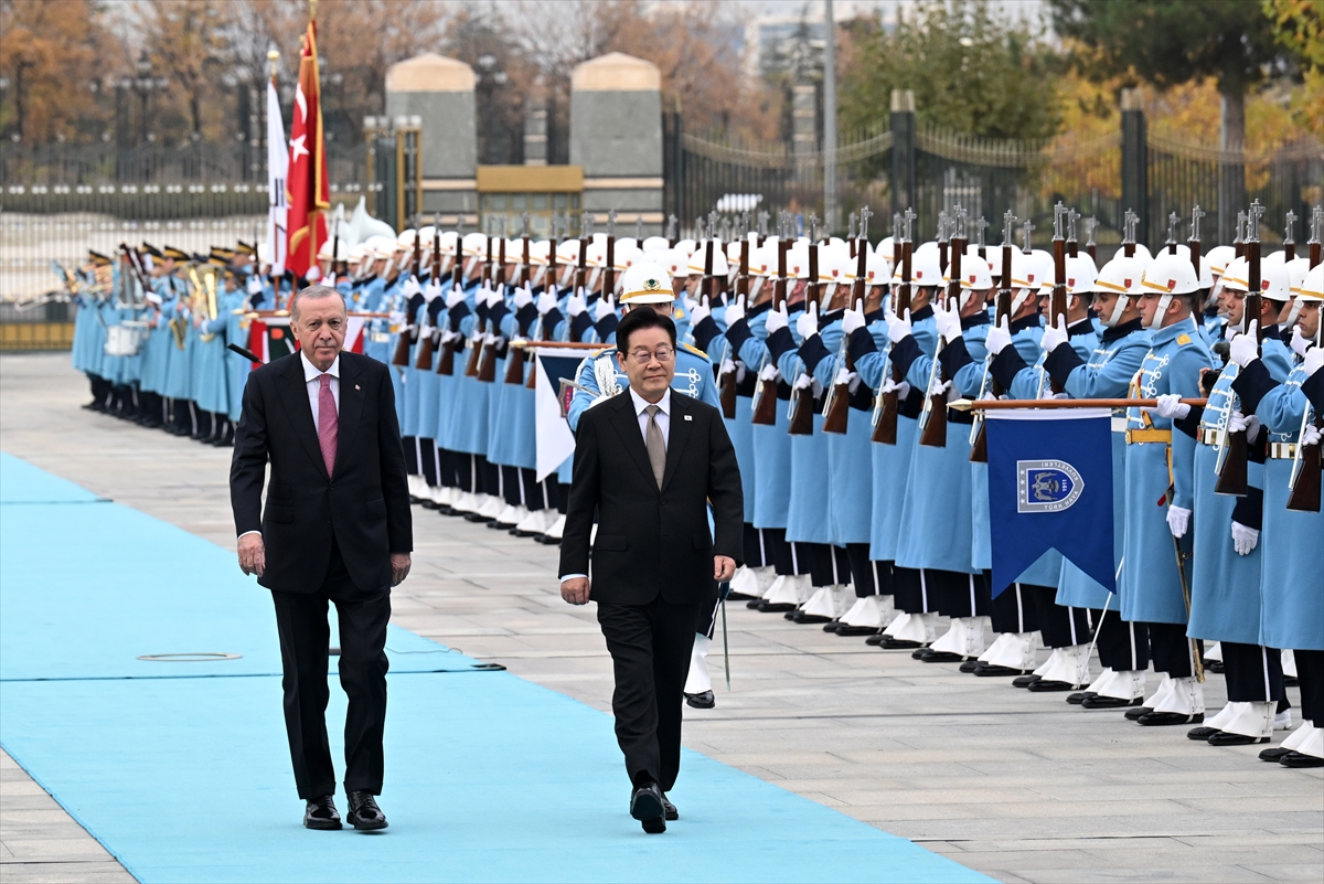 Güney Kore Devlet Başkanı Lee Jae Myung, 24 Kasım 2025 tarihinde Cumhurbaşkanlığı Külliyesi’nde resmî törenle karşılanmıştır. Lee’nin makam aracını Cumhurbaşkanlığı Külliyesi önündeki caddede karşılayan süvariler, araca protokol kapısına kadar eşlik etmiştir. Cumhurbaşkanı Recep Tayyip Erdoğan, Lee'yi külliyenin ana giriş kapısında karşılamıştır. Tören alanında iki ülkenin millî marşları çalınmıştır. Alanda tarihte kurulan 16 Türk devletini temsil eden bayraklar ve askerler yer almış, 21 pare top atışı yapılmıştır.
