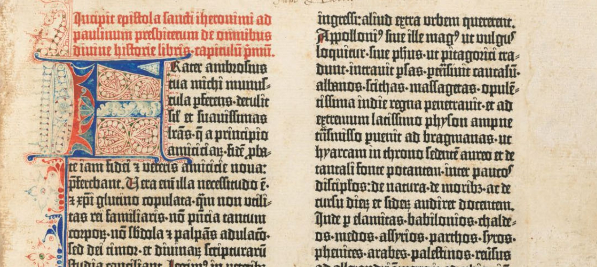 Harvard Kütüphanesi'nde bulunan Gutenberg İncili'nden bir sayfa (Harvard Library)