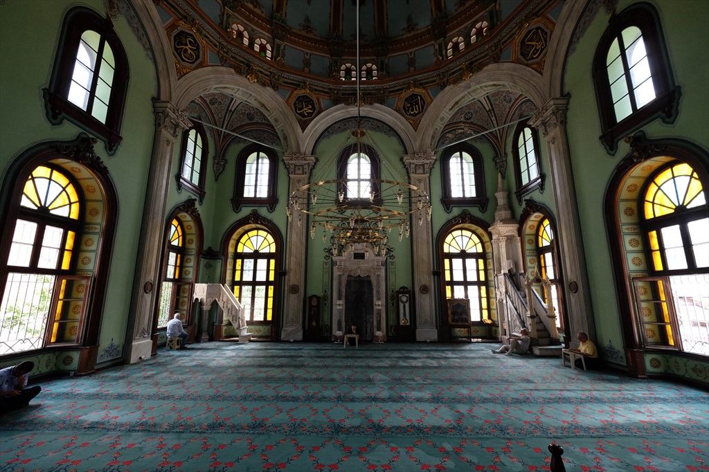 Caminin zemin katı, medrese olarak tasarlanmış ve ana girişin iki yanında dört adet mermer çeşme bulunmaktadır. Caminin üst katına ulaşım, barok etkili, kıvrımlı ikili merdivenlerle sağlanmaktadır. Üst katta yer alan avlu tamamen mermerle kaplanmış olup, avluda demir korkuluklara destek olan kırmızı taşlardan yapılmış babalar yer almaktadır. Avlu, yapıdaki en dikkat çekici unsurlardan biridir ve caminin barok etkilerinin en belirgin şekilde görüldüğü alanlardan biridir.