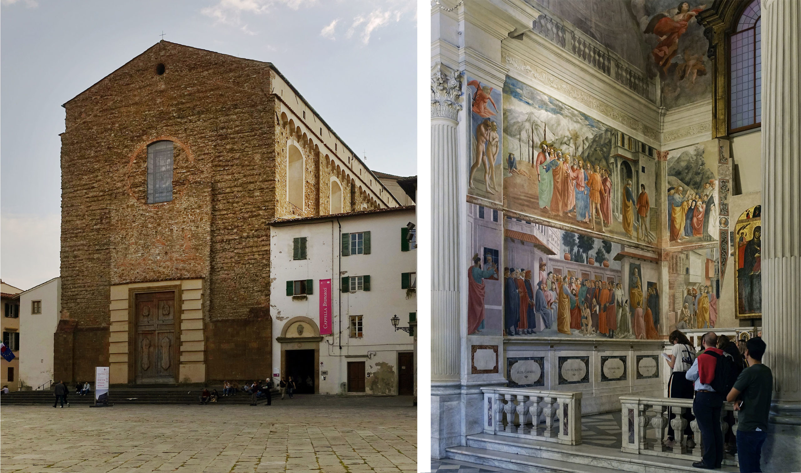 Brancacci Şapeli, 1425–1427 yılları arasında Masaccio ve Masolino da Panicale tarafından Aziz Petrus’un hayatını anlatan sahnelerle dekore edilmeye başlandı. Masolino’nun Macaristan’a gitmesi ve Masaccio’nun Roma’ya giderek 1428’de orada ölmesi üzerine fresk döngüsü yarım kaldı. Çalışmalar, 1481–1485 yılları arasında Filippino Lippi tarafından tamamlandı.