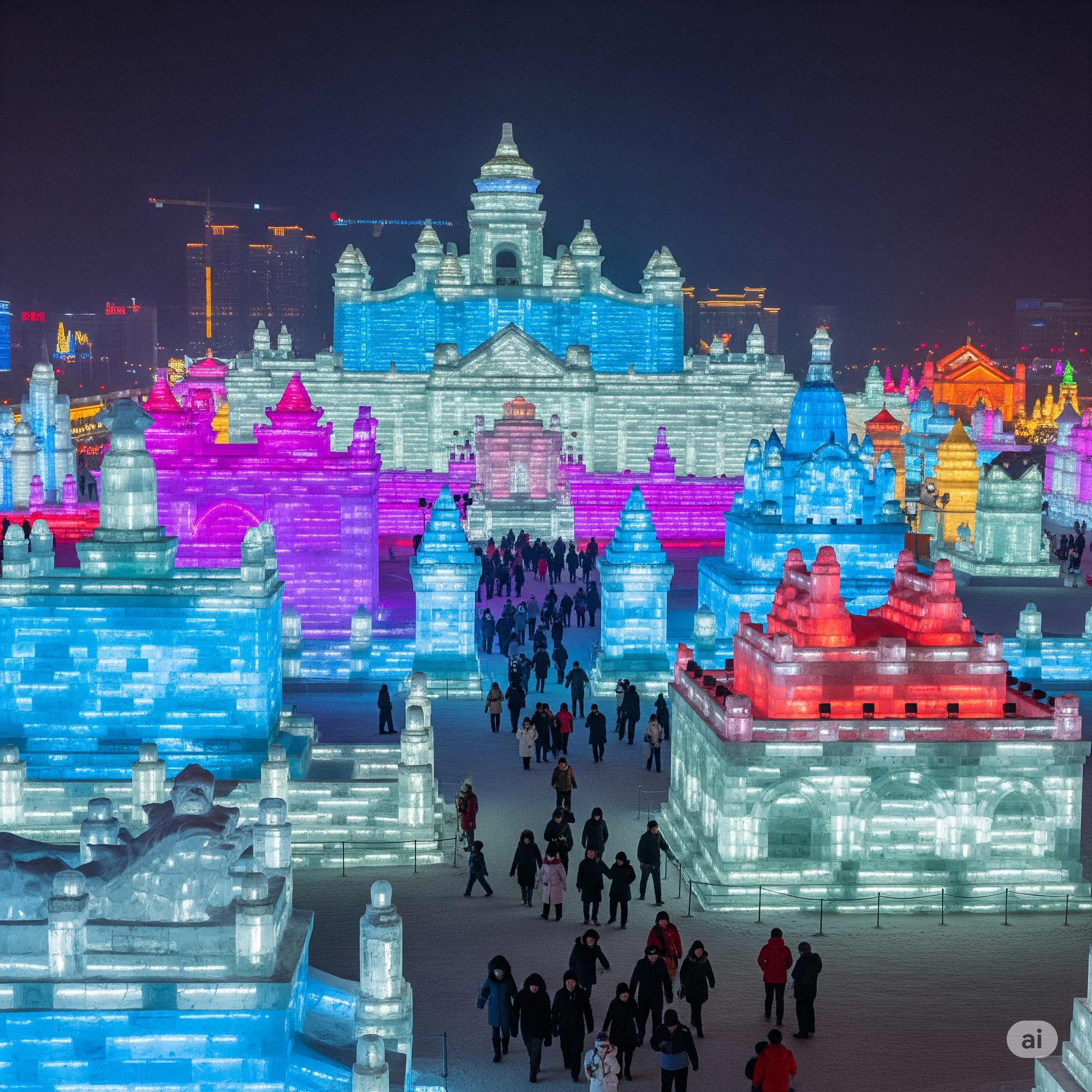 Harbin Buz ve Kar Festivali (Yapay zeka ile oluşturulmuştur)