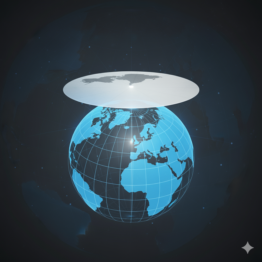 - Azimutal (Düzlem) Projeksiyonlar: İzdüşüm doğrudan bir düzlem üzerine yapılır.