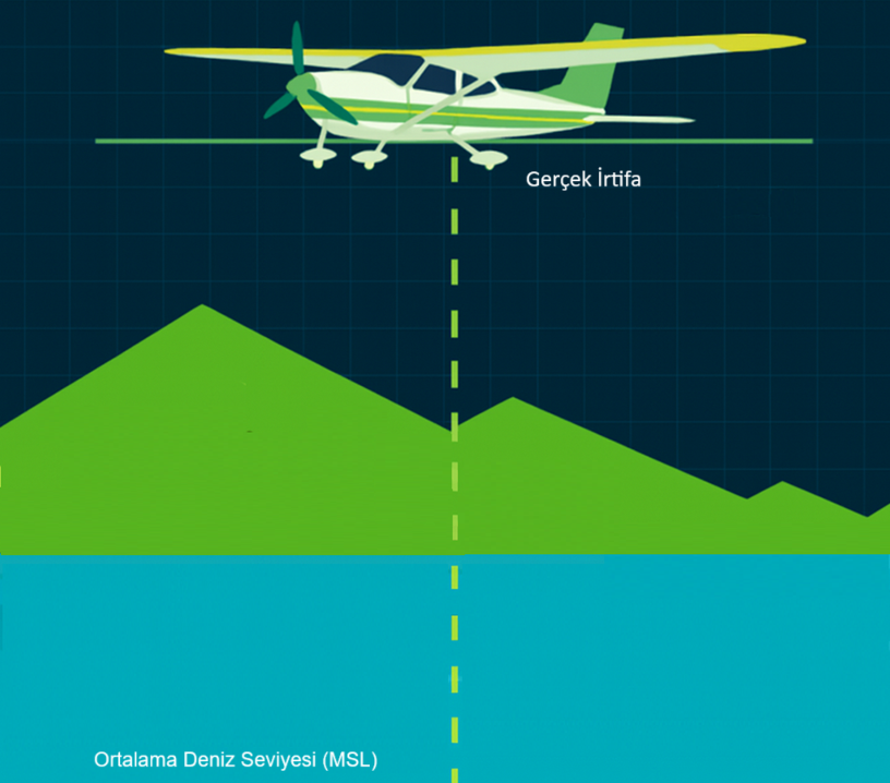 - Gerçek irtifa, engel geçişi ve seyrüsefer hesaplamalarında kullanılır.