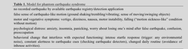 Bu tablo, "Phantom Eartquake Syndrome : A Pilot Study After Zagreb and Banovina 2020 Earthquake" başlıklı çalışmadan alınmıştır.