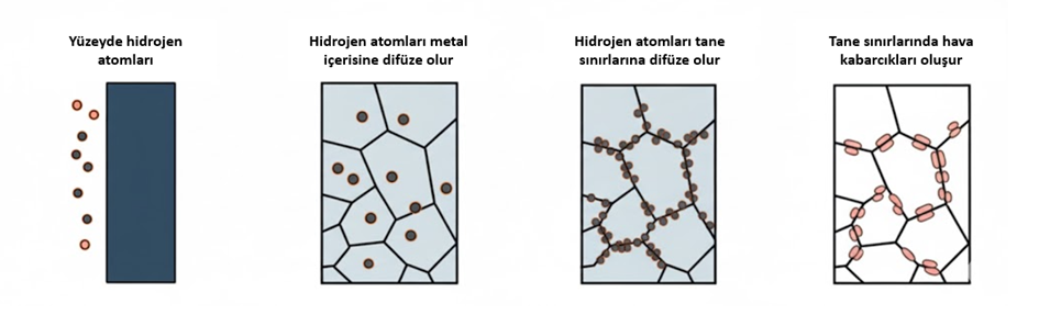 Hidrojenin Metale Girişinin Şematik Gösterimi (Yapay Zeka Tarafından Oluşturulmuştur.)