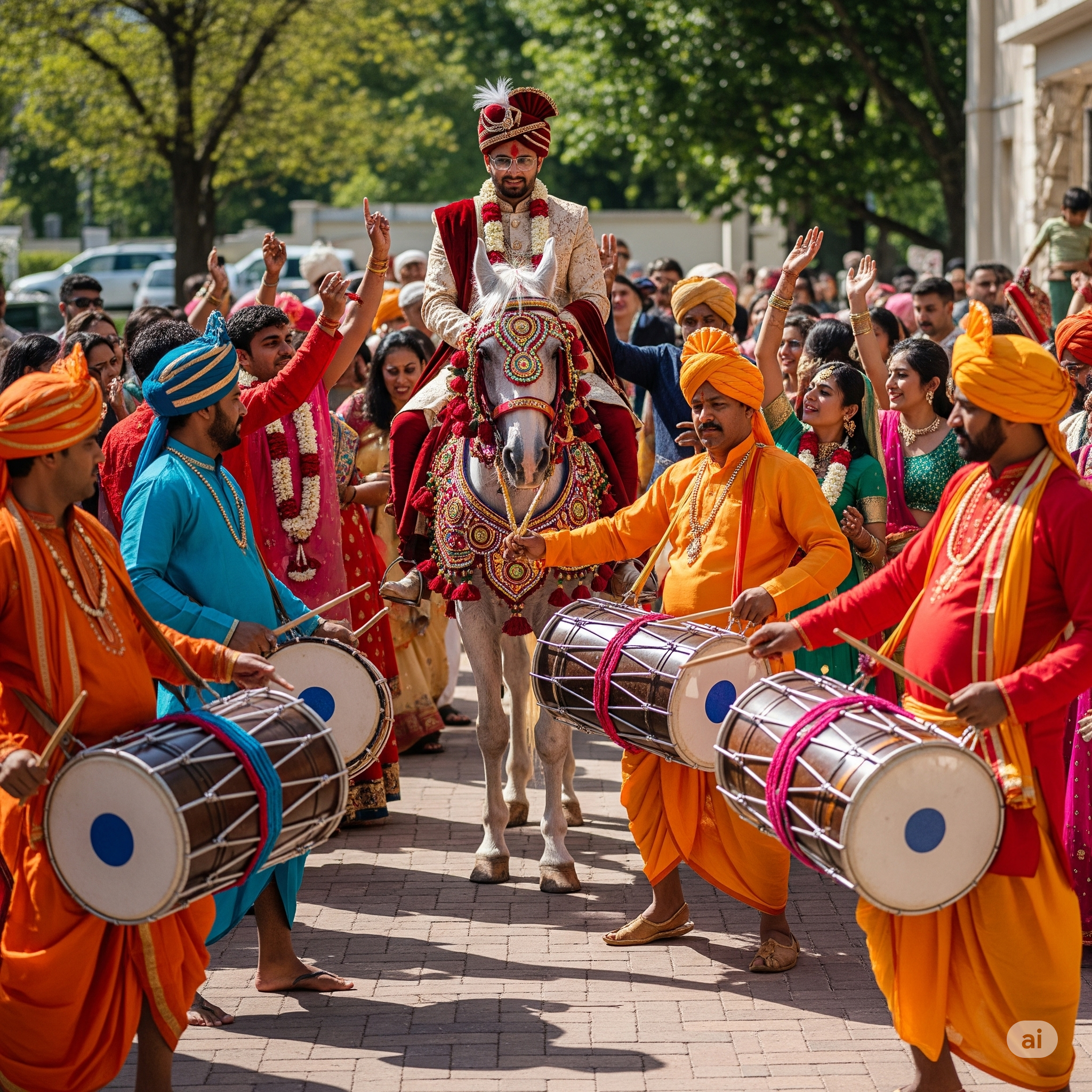 Baraat Törenini Tasvir Eden Görsel (Yapay Zeka İle Oluşturulmuştur)