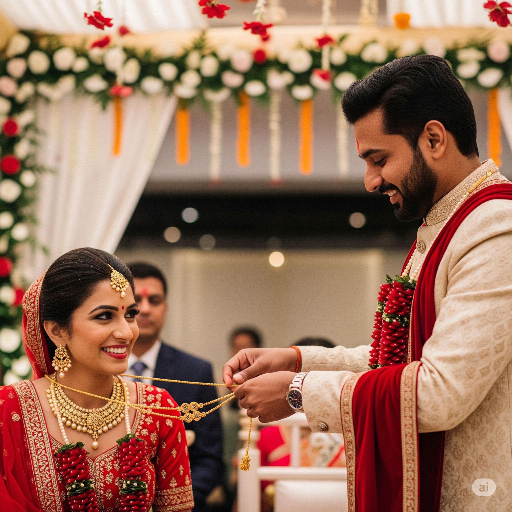 Mangalsutra Seremonisi'ni Tasvir Eden Görsel (Yapay Zeka İle Oluşturulmuştur)