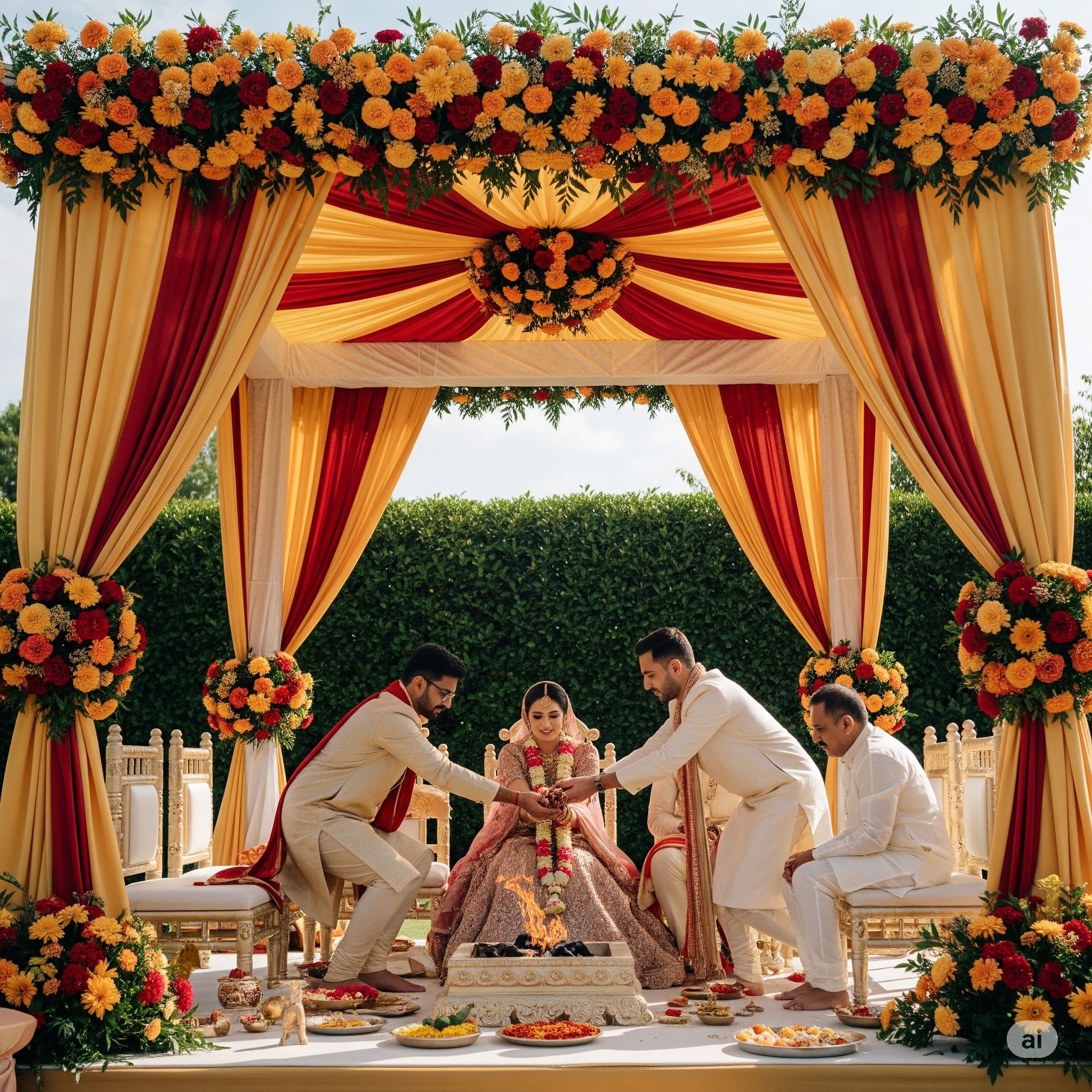 Mandap ve Laja Homa İşlemini Tasvir Eden Görsel (Yapay Zeka İle Oluşturulmuştur)