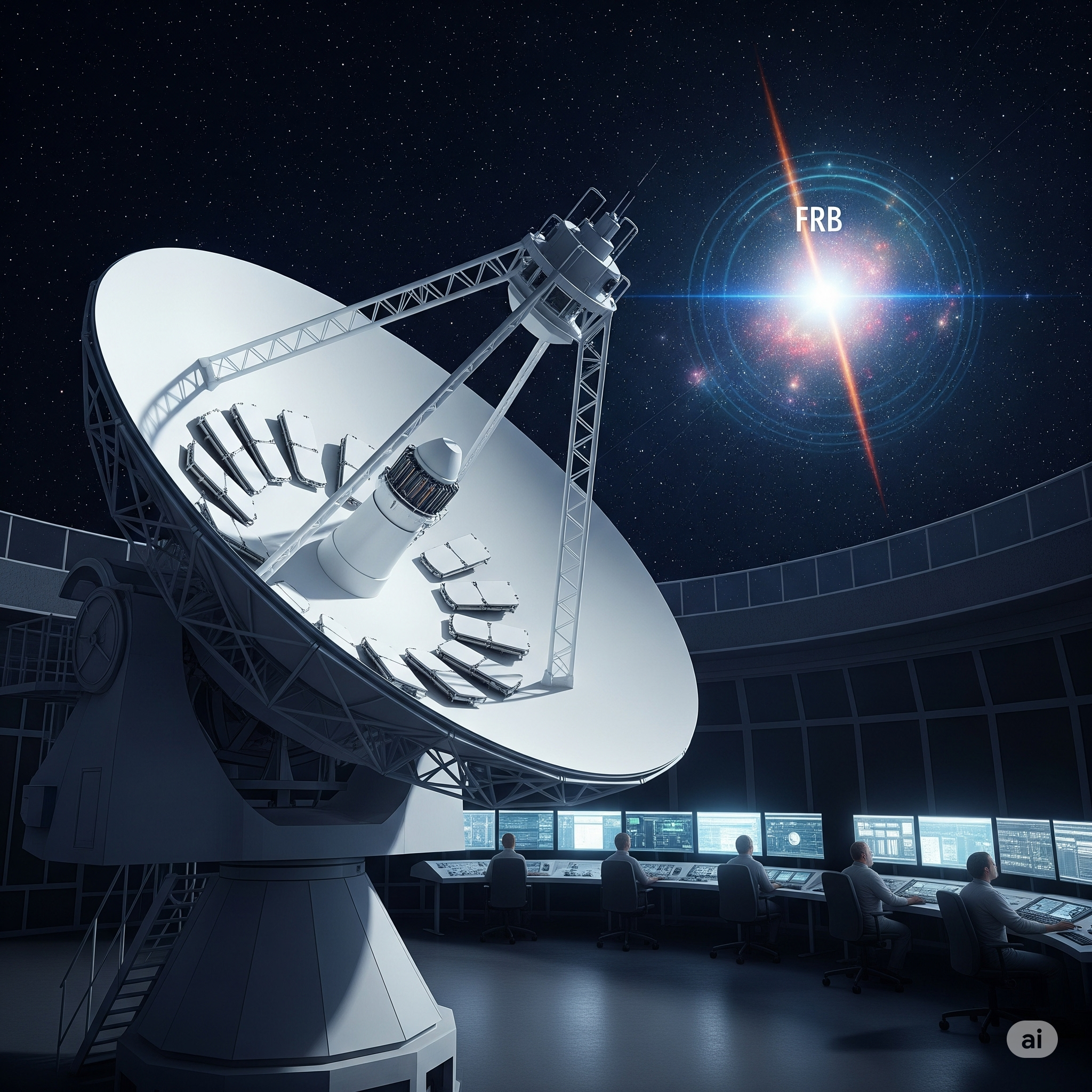 Hızlı radyo patlamaları gözlem teleskopu ile incelenirken (Yapay zeka ile oluşturulmuştur )