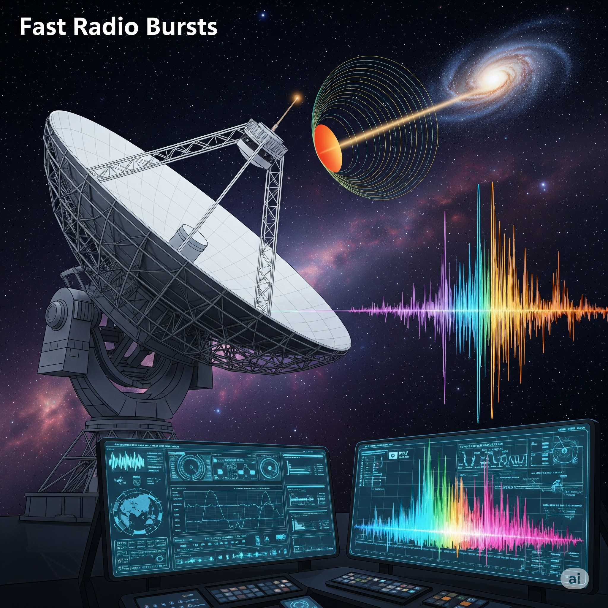 Hızlı radyo patlamaları (Fast Radio Bursts – FRB ), gökyüzünün rastgele yönlerinden gelen ve yalnızca milisaniyelik zaman dilimlerinde tespit edilebilen güçlü radyo sinyalleridir. Gözlemlendikleri süre kısa olmasına rağmen, taşıdıkları enerji miktarı olağanüstü düzeydedir. Sıklıkla birkaç milisaniye süren bir FRB, Güneş’in birkaç gün boyunca yayacağı enerjiye eşdeğer güçte olabilir. Tespit edildikleri frekans aralıkları geniştir ve yüksek hassasiyetli radyo teleskop sistemleriyle kayıt altına alınırlar.
