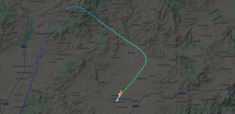 Yetkililerce yapılan açıklamalara göre, söz konusu uçaktan Ankara’nın Haymana ilçesi civarında acil iniş bildirimi alınmıştır. Bu bildirimin ardından uçakla yeniden temas sağlanamamıştır.