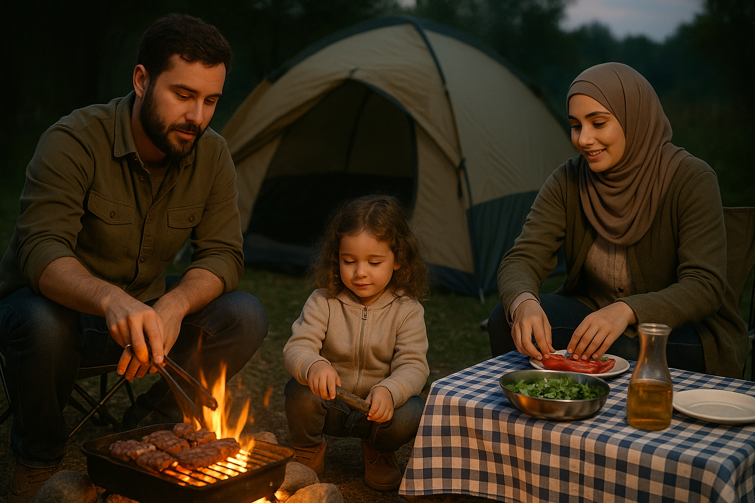 Doğada Kamp Yapan Bir Aile (Yapay zeka ile oluşturulmuştur)