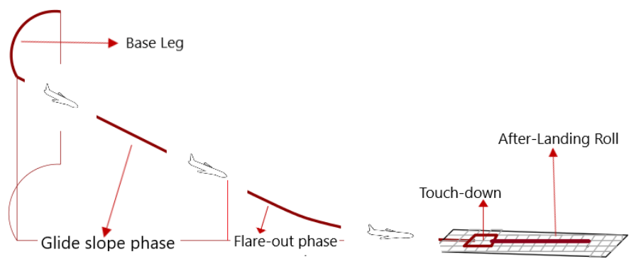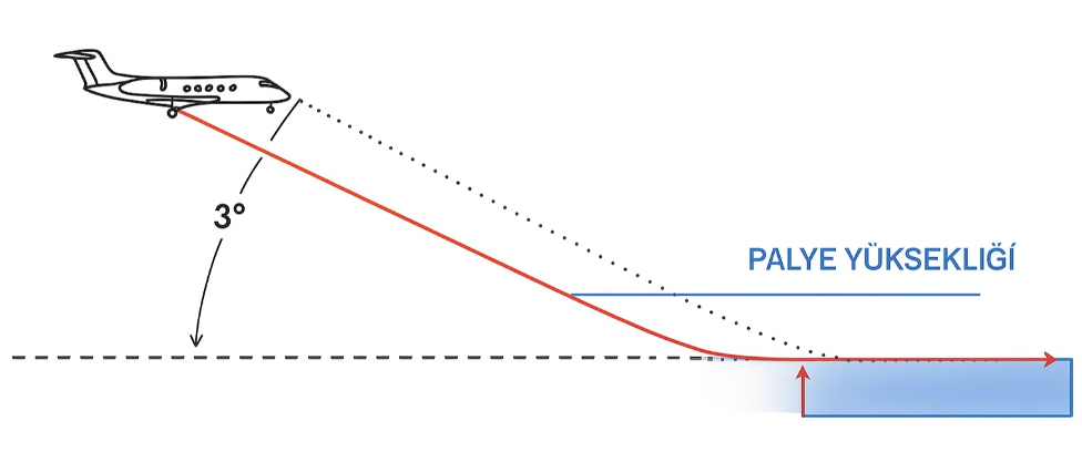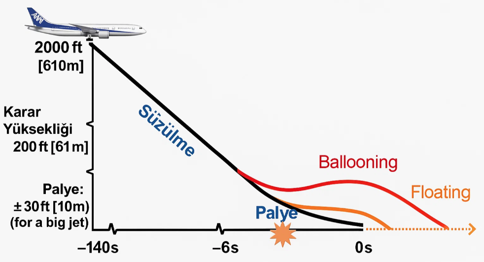 - Level-off: Yaklaşma süzülüşü sıfırlanır, uçak yere paralel uçuşa getirilir.