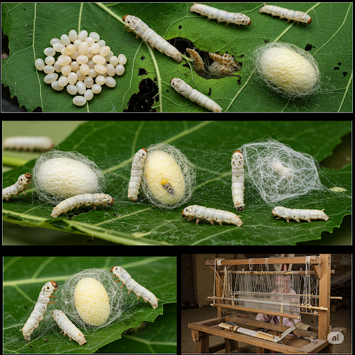 İpek Böceği Yaşam Döngüsü. (Yapay zeka ile oluşturulmuştur.)
