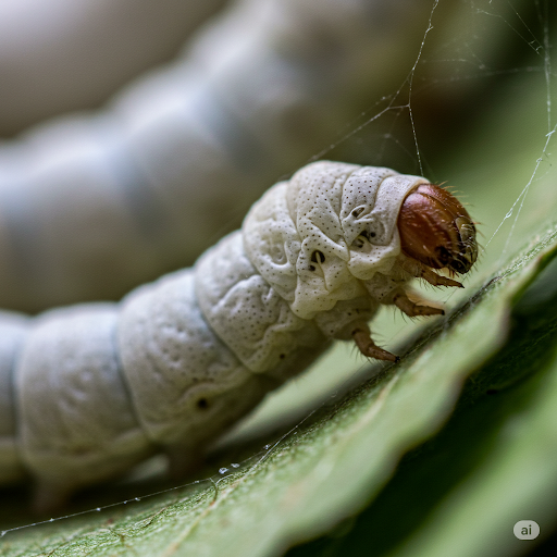 İnsan Eliyle İpek Üreten Bombyx Mori Larvası. (Yapay zeka ile oluşturulmuştur.)