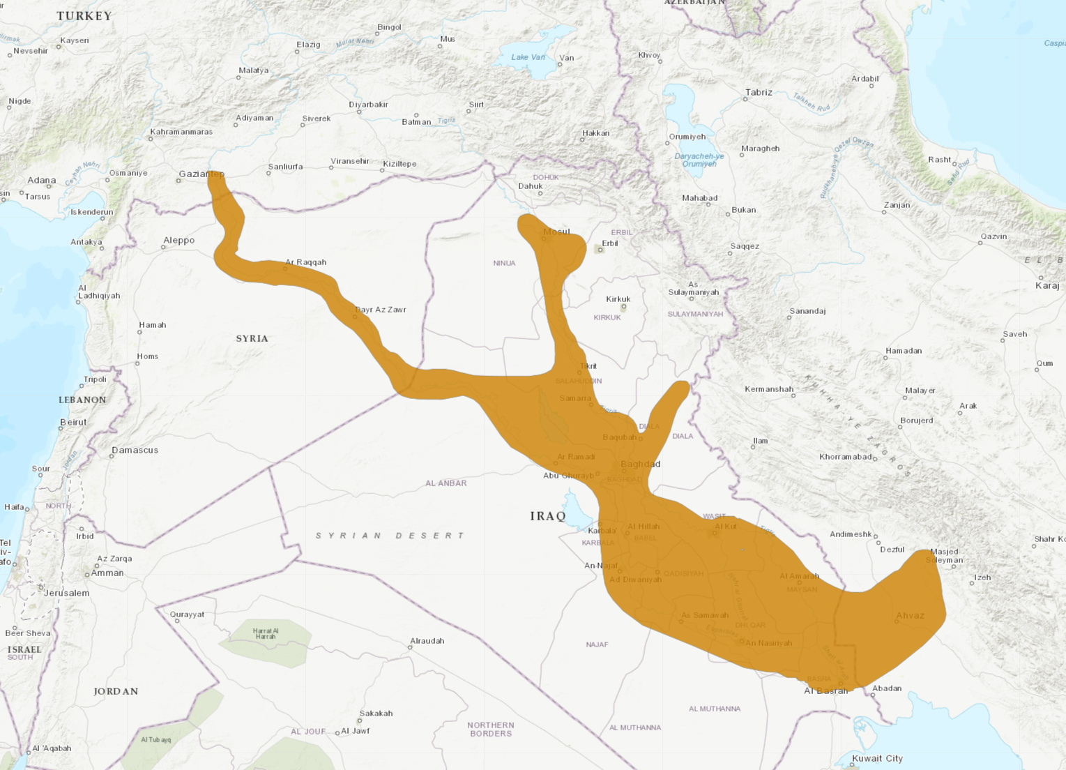Bu tür, esas olarak Mezopotamya bölgesine özgüdür ve Güneydoğu Anadolu’dan başlayarak Suriye, Irak ve güneybatı İran boyunca Fırat ve Dicle nehirlerinin çevresindeki sulak alanlarda yaşamaktadır. Yerel halk arasında bilinirliği yüksek olan bu kuş türü, Türkiye’de en çok Birecik ve Nizip gibi Güneydoğu ilçelerinde gözlemlenmiştir.
